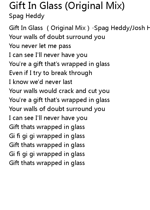| [00:00.424] | Gift In Glass Original Mix Spag Heddy Josh Hand |