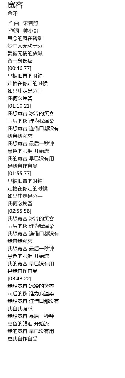 | [01:35.66] | 我想宽容 最后一秒钟 |