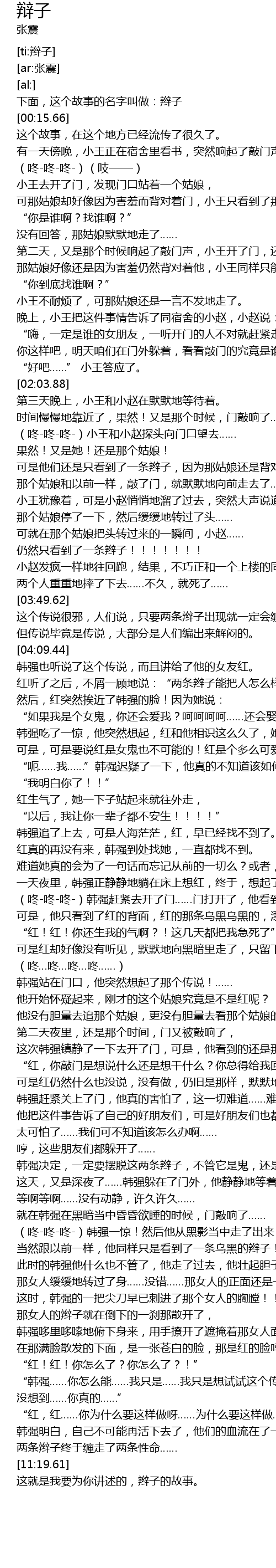 | [00:12.00] | 下面,这个故事的名字叫做:辫子 |