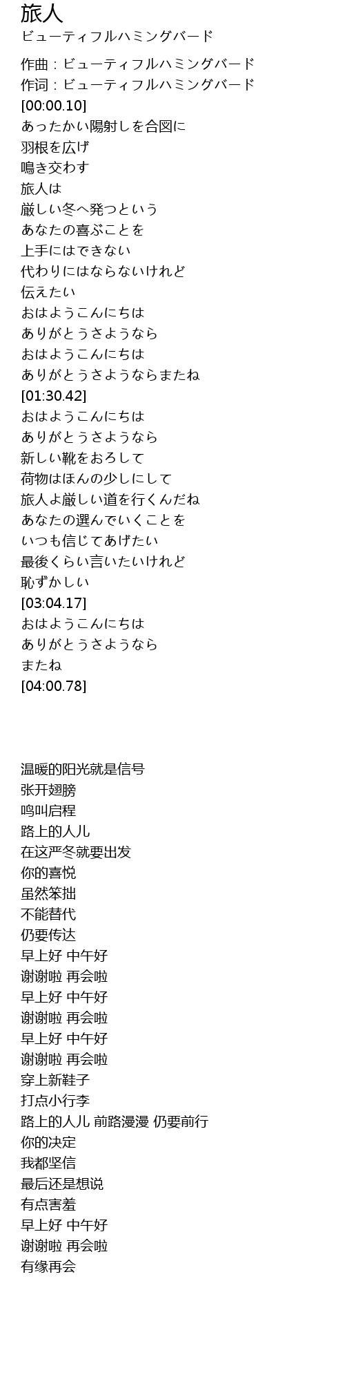 作词:ビューティフルハミングバード |