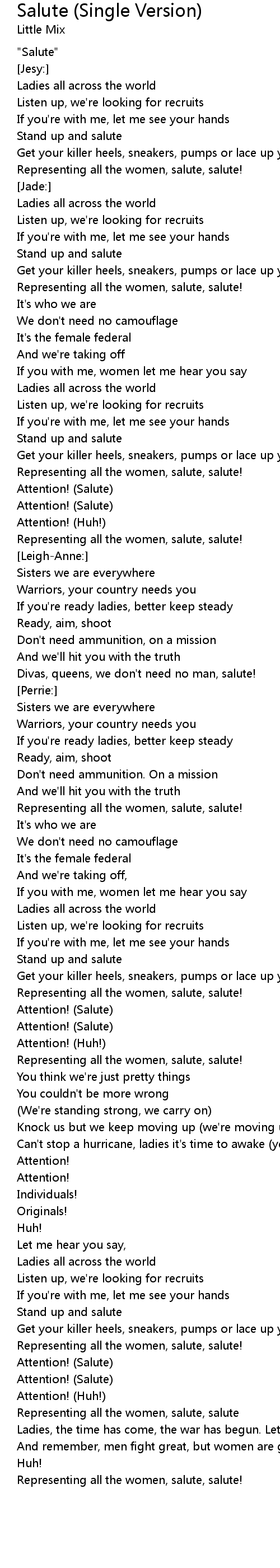 Divas, queens, we don't need no man, salute! |