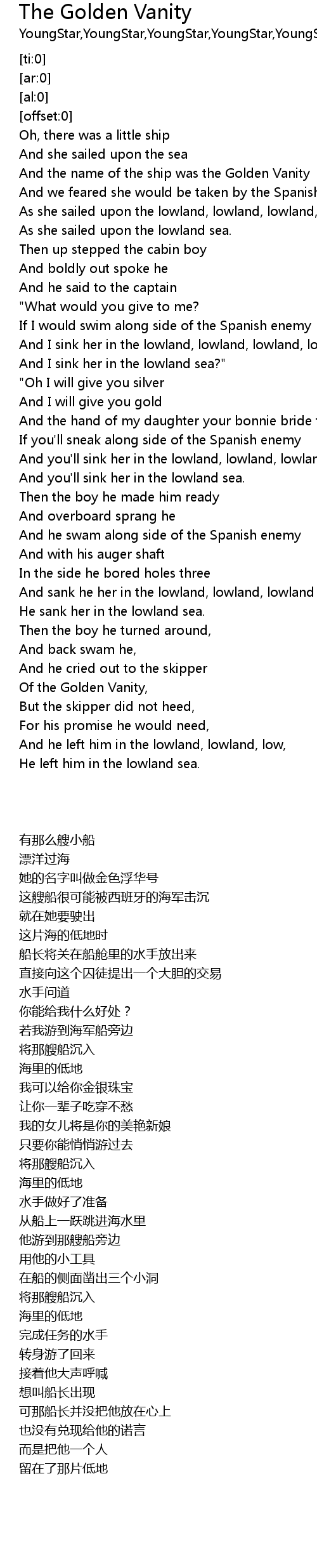 | [00:40.43] | And I sink her in the lowland sea?" |