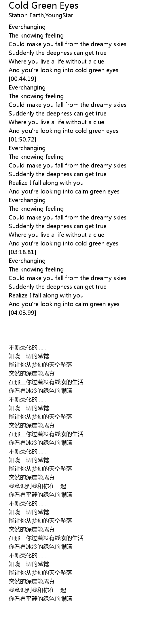 And you're looking into cold green eyes |