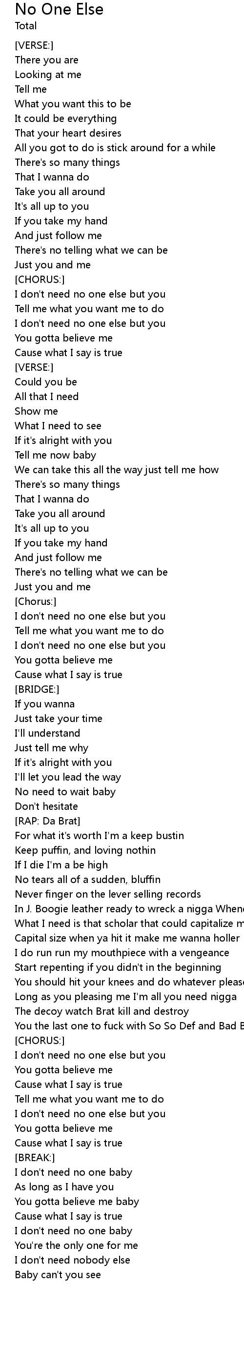 I don't need no one baby |