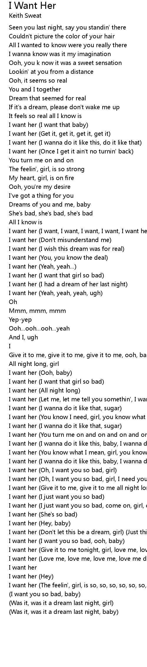 I want her (Don't let this be a dream, girl) (Just think about tonight, baby) |