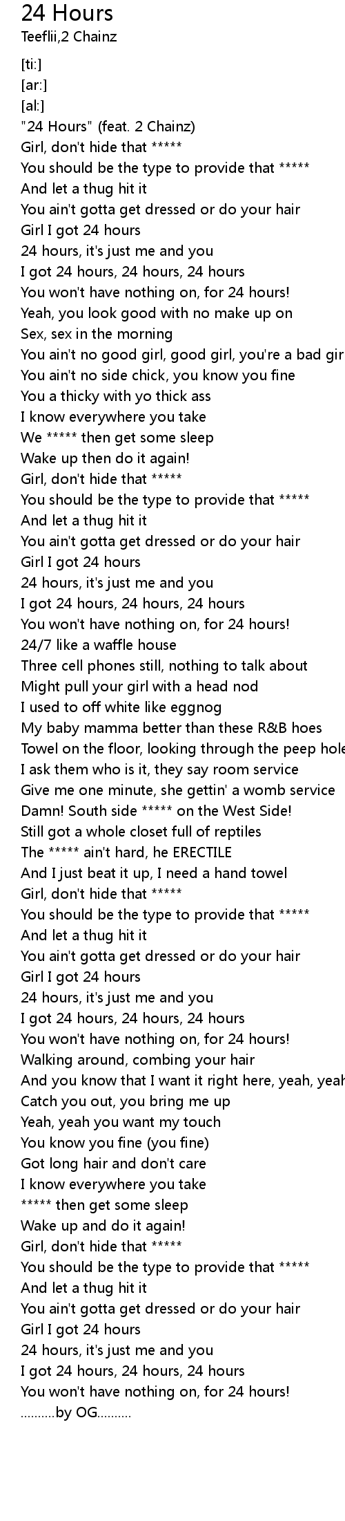| [00:24.43] | I got 24 hours, 24 hours, 24 hours |