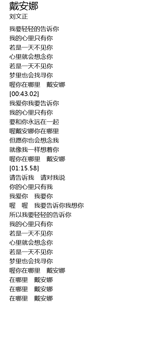 | [00:57.01] | 喔戴安娜你在哪里 |