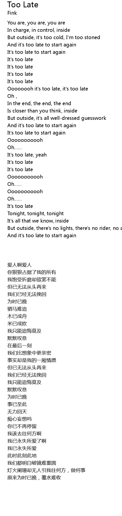 | [00:56.678] | It' s too late |