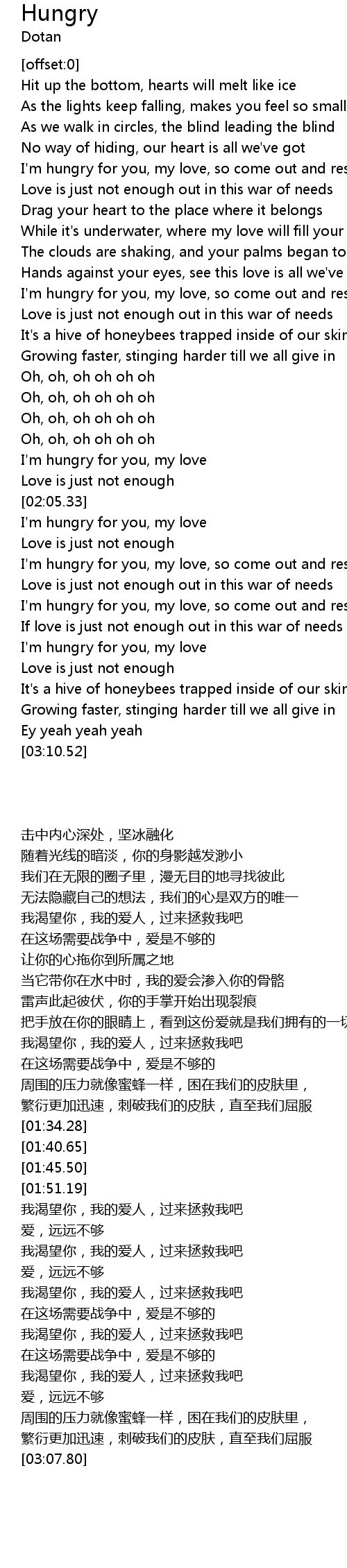 | [00:34.73] | I'm hungry for you, my love, so come out and rescue me |