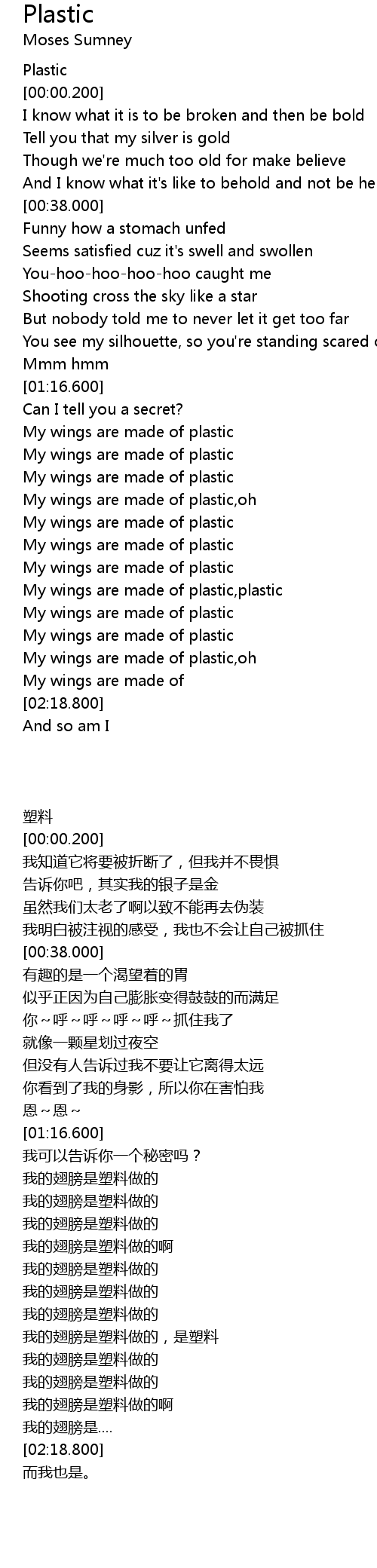 My wings are made of plastic,oh |