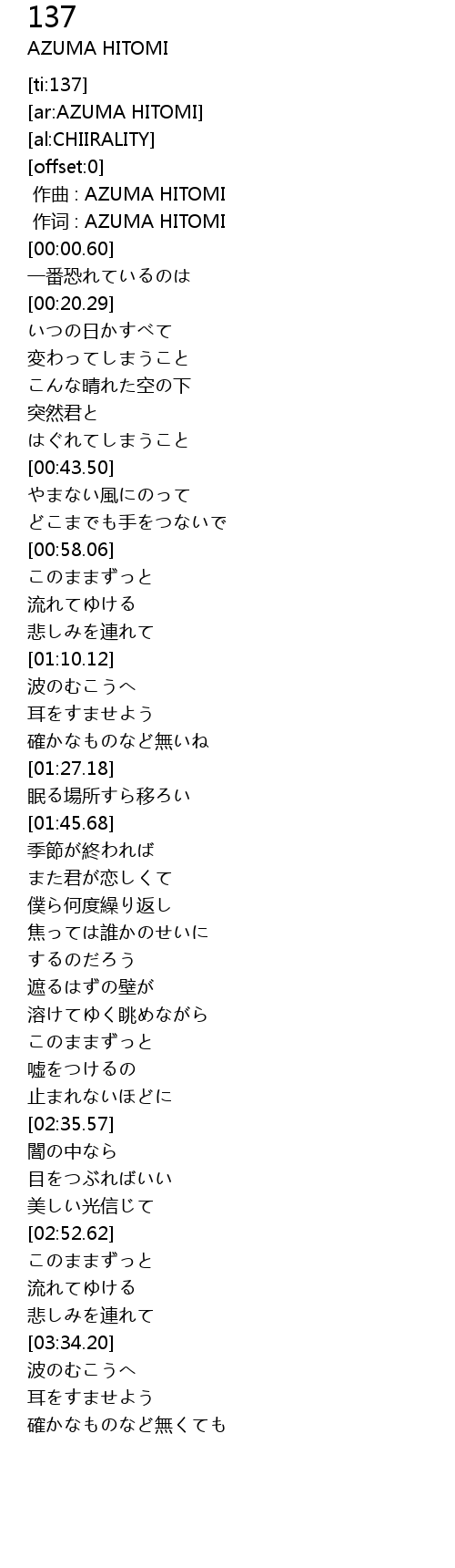 [00:00.00] zuò qǔ : AZUMA HITOMI