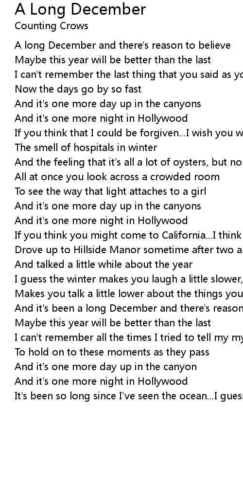 A long December and there's reason to believe |