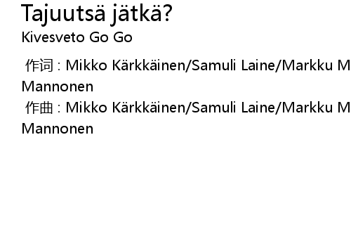 | [00:00.000] | 作曲 : Mikko Kärkkäinen/Samuli Laine/Markku Mäntynen/Tuomo Mannonen |
