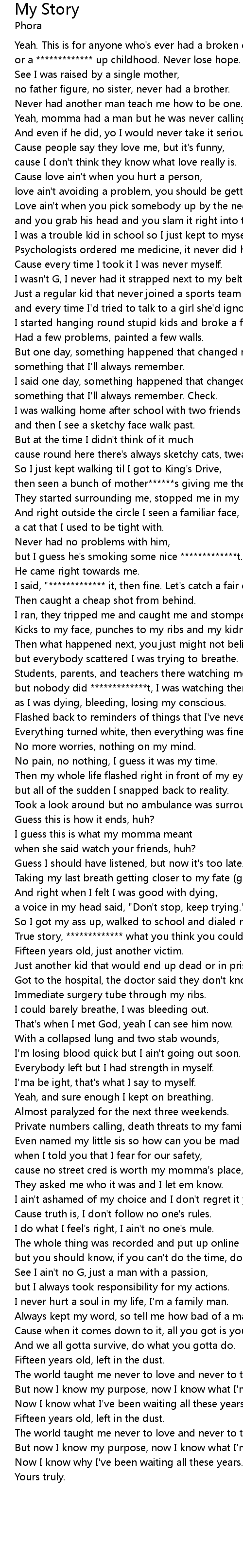 or a ************* up childhood. Never lose hope. |