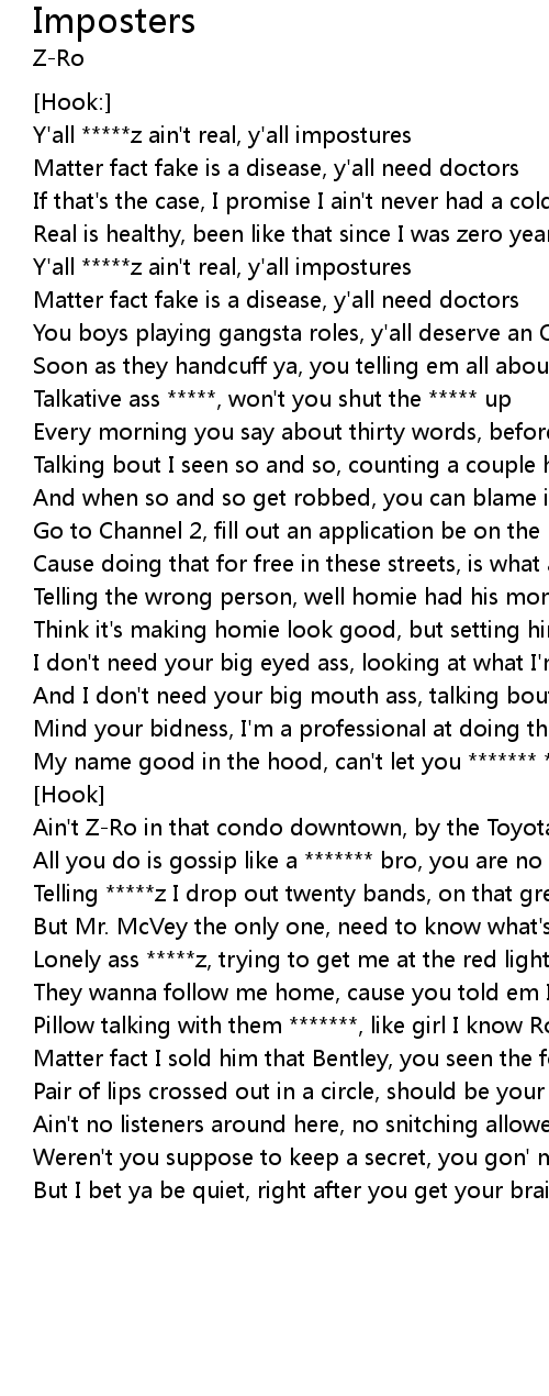 | Y'all *****z ain't real, y'all impostures | |