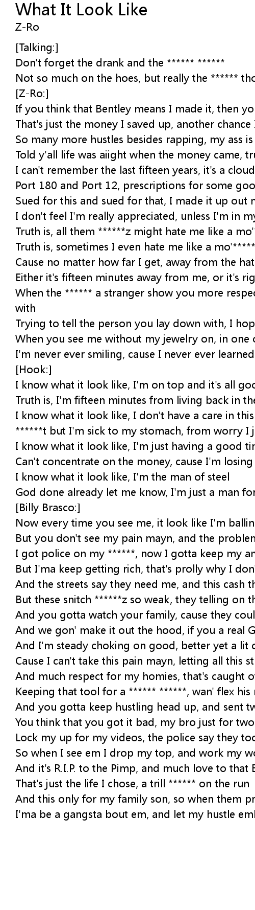 | Told y'all life was aiight when the money came, truth is I was faking | |