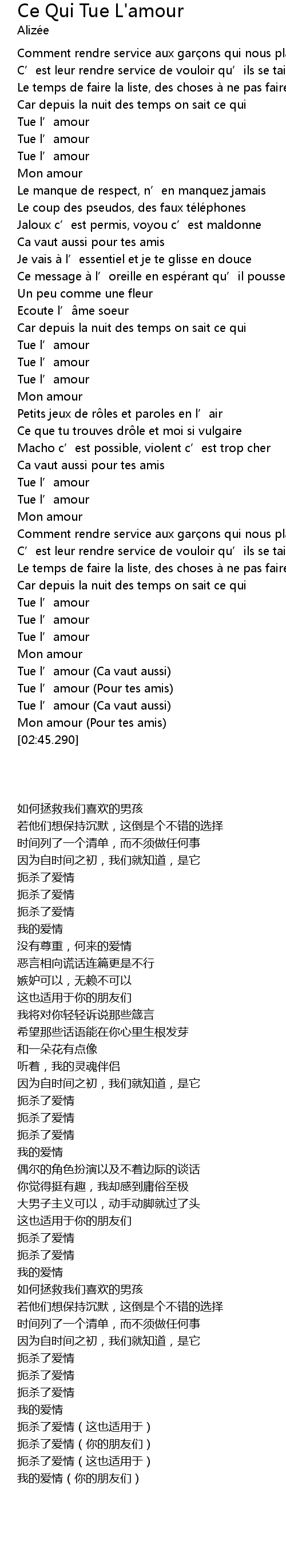 | [02:32.170] | Tue l' amour Pour tes amis |
