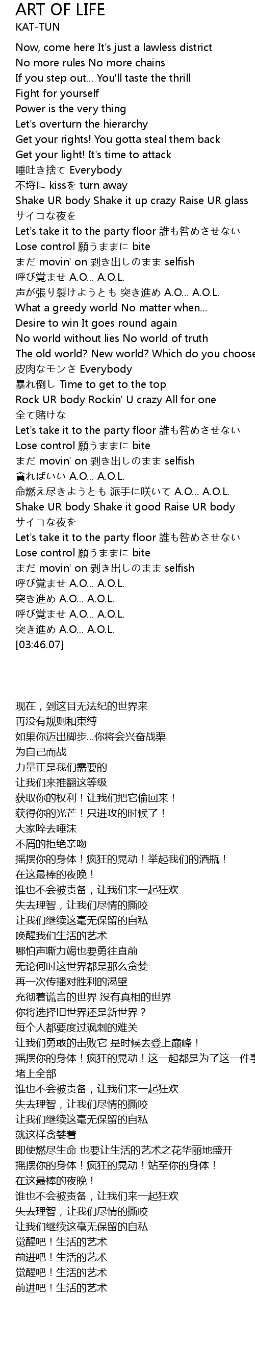 | [03:40.93] | 突き進め A.O... A.O.L. |