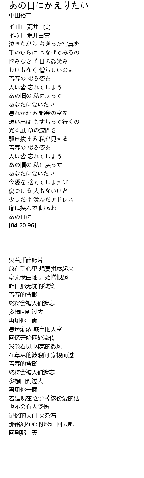 | [00:21.06] | 泣きながら ちぎった写真を |