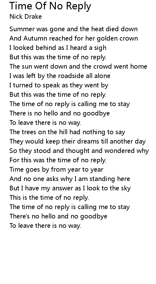 The time of no reply is calling me to stay |