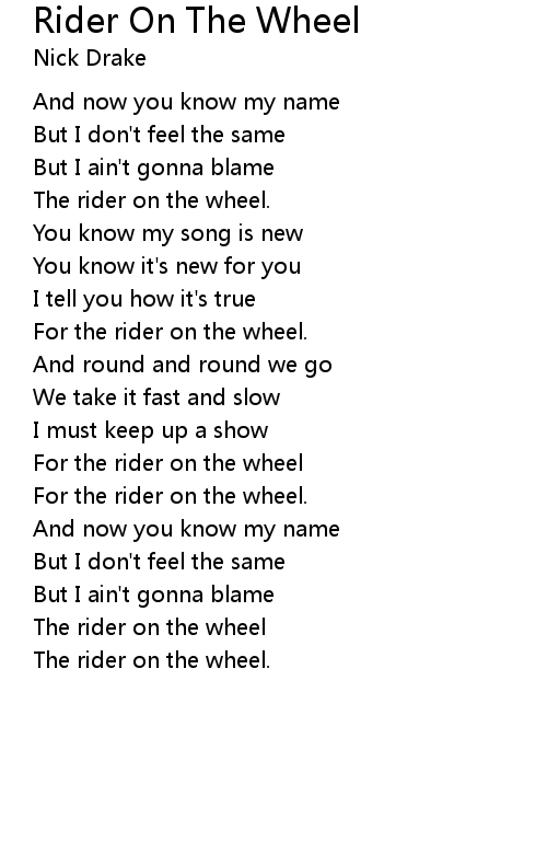 | Song | Rider On The Wheel |