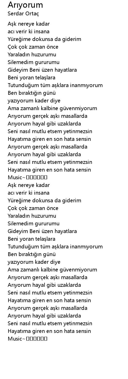 | [02:31.20] | Arıyorum hayal gibi uzaklarda |