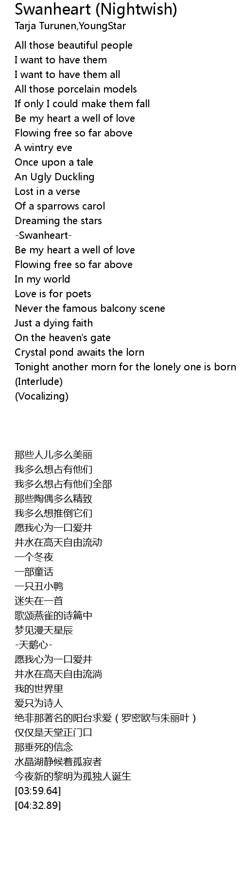 Swanheart (Nightwish) Lyrics