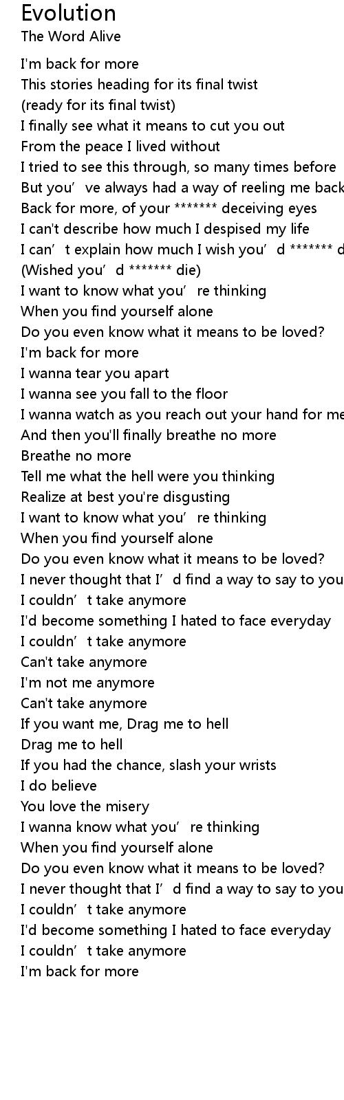 | Back for more, of your ******* deceiving eyes | |