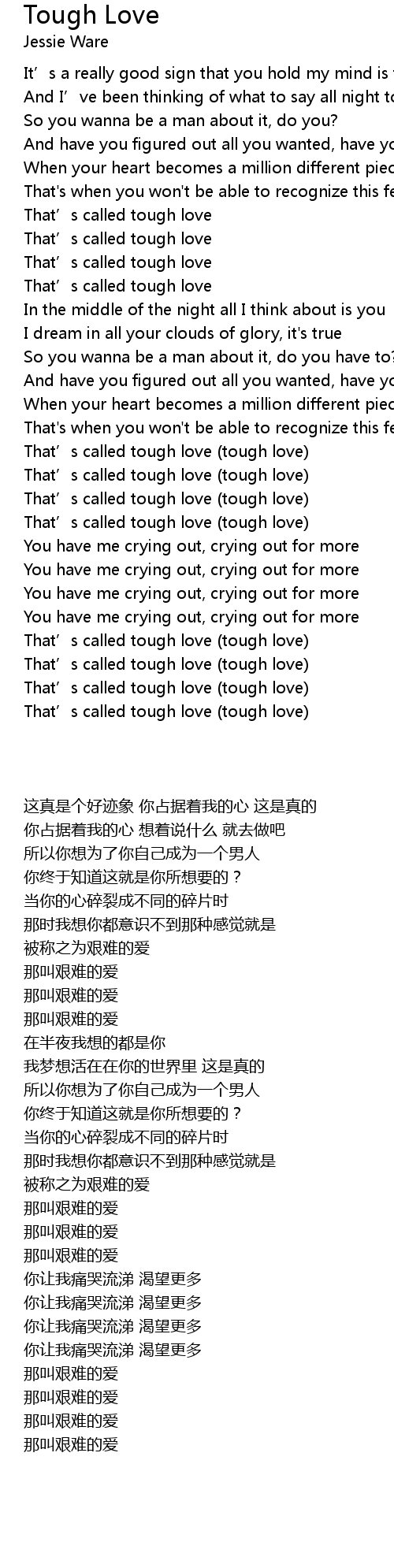| [02:00.21] | That’s called tough love (tough love) |