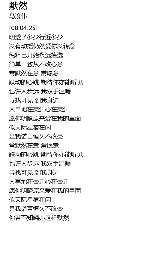 | [00:42.51] | 常默然在意 常愿意 |