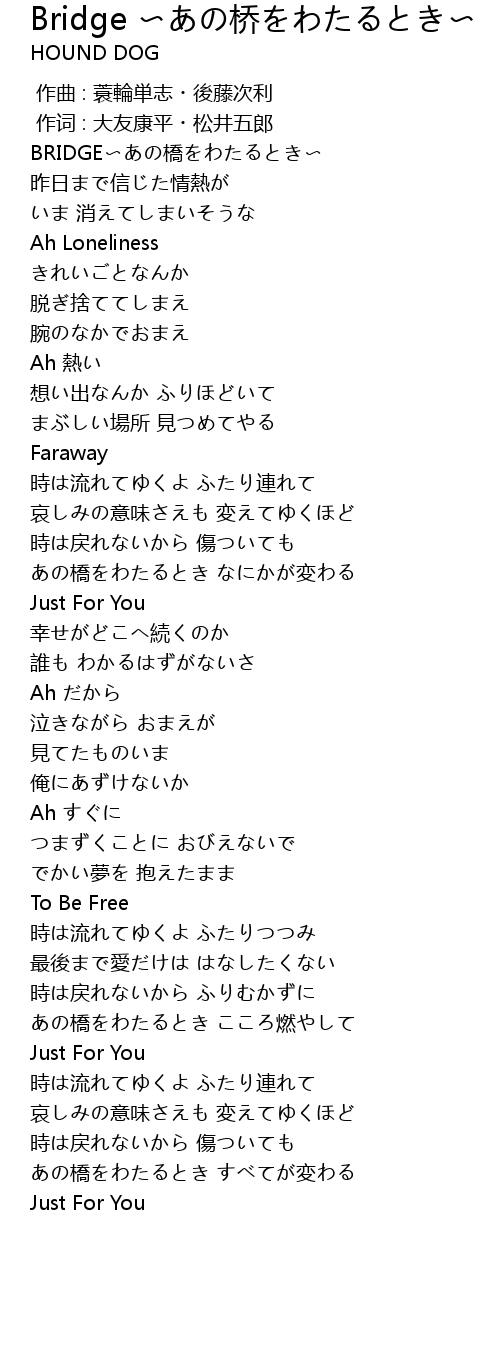| [02:45.41] | あの橋をわたるとき こころ燃やして |