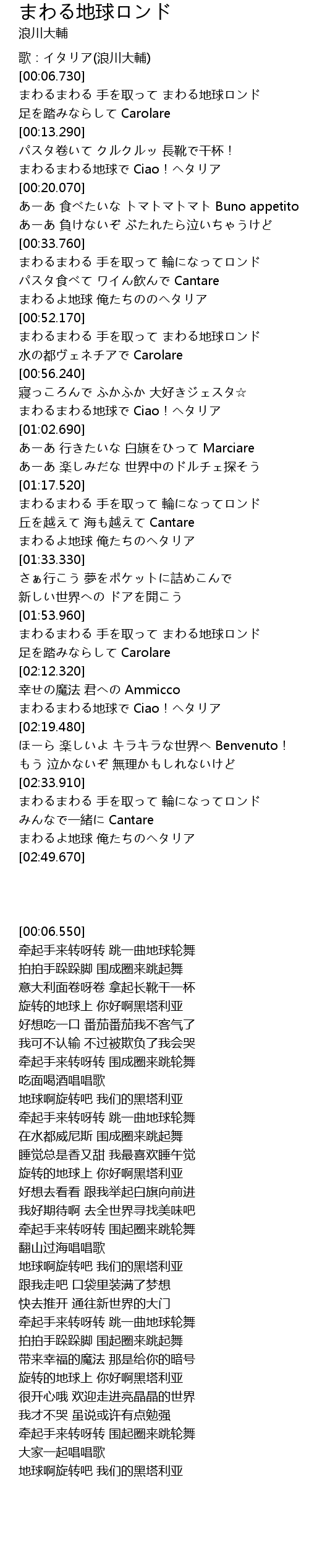 | [00:16.420] | まわるまわる地球で Ciao!ヘタリア |