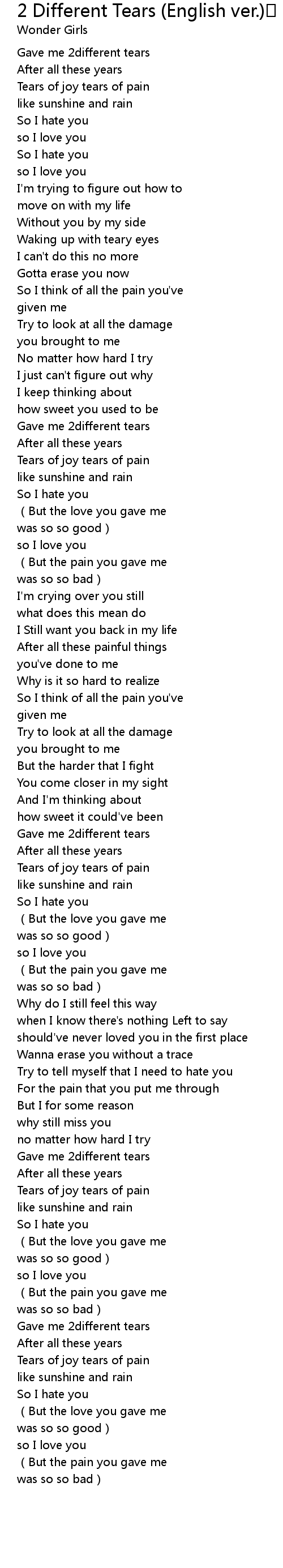 | [02:54.378] | Gave me 2different tears |