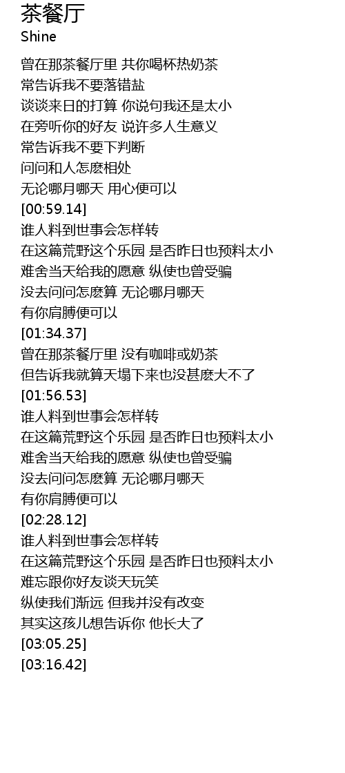 | [01:43.59] | 曾在那茶餐厅里 没有咖啡或奶茶 |