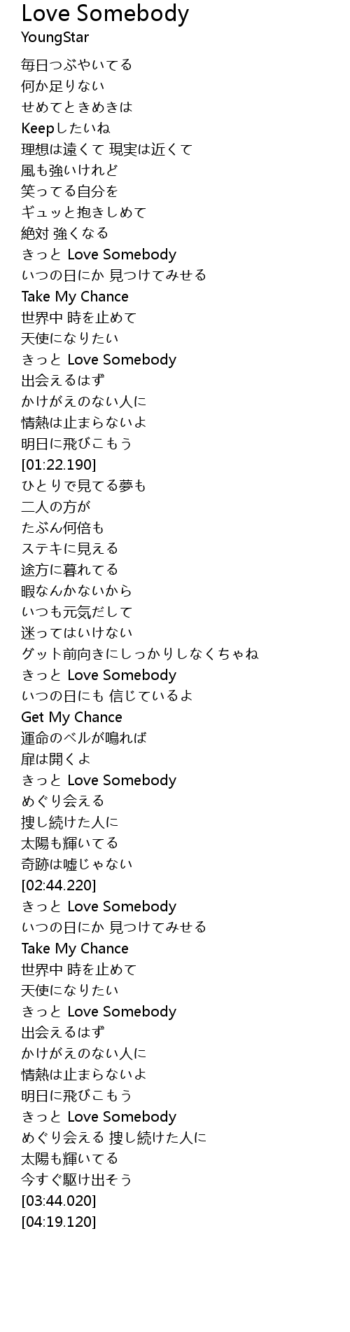 | [02:59.410] | きっと Love Somebody |