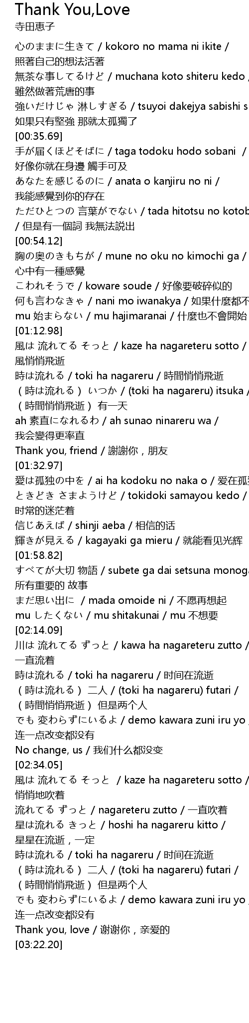 | [03:16.91] | Thank you, love / 谢谢你,亲爱的 |