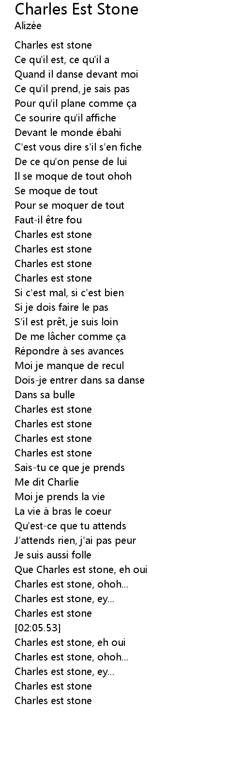 | [00:53.20] | Charles est stone |