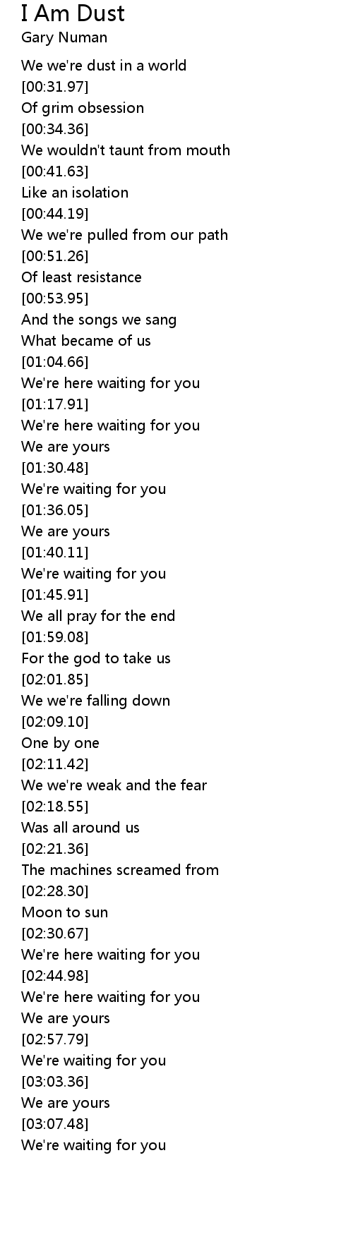 We we're dust in a world |