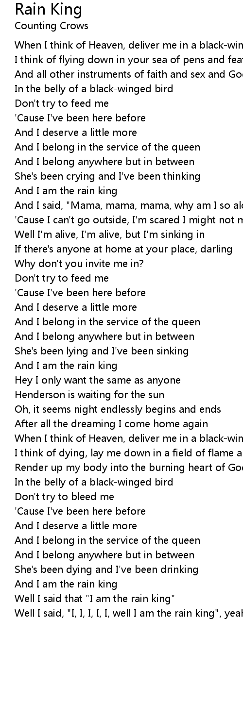 Well I said, "I, I, I, I, I, well I am the rain king", yeah |