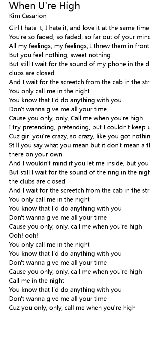 Cause you only, only, Call me when you're high |