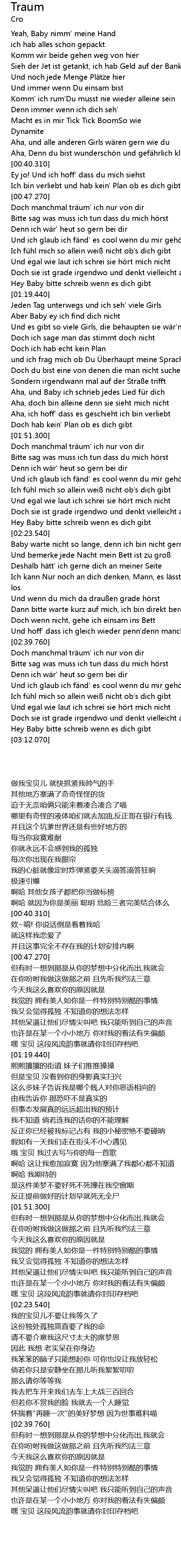 | [02:40.160] | Doch manchmal tr um' ich nur von dir |