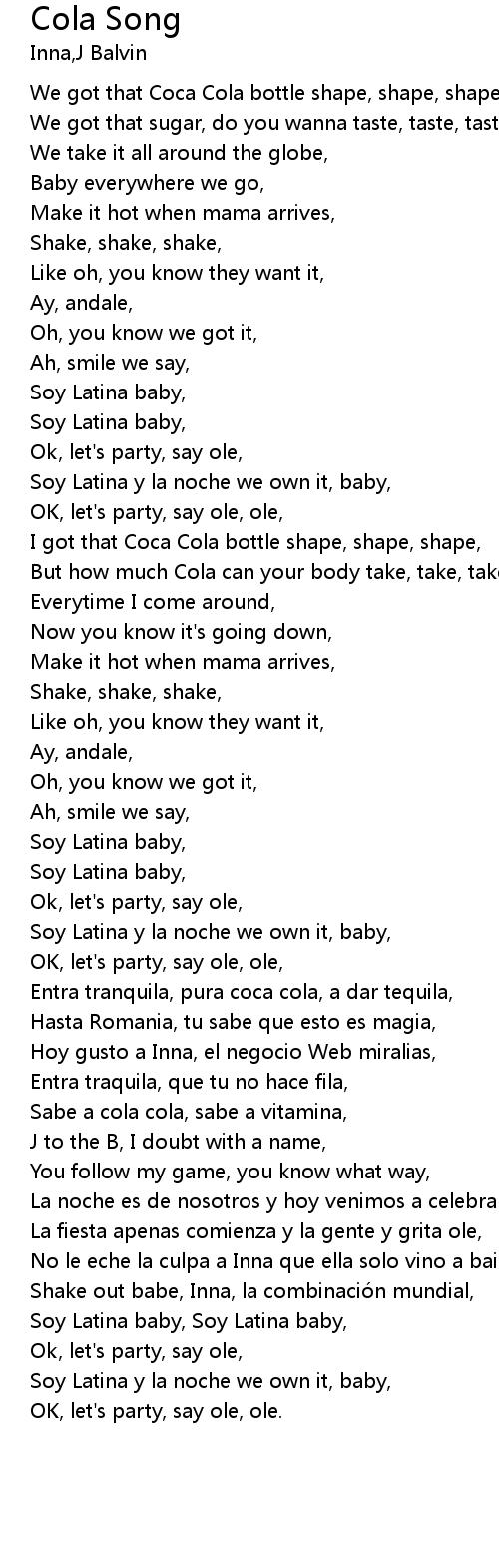 | [01:05.22] | But how much Cola can your body take, take, take, |