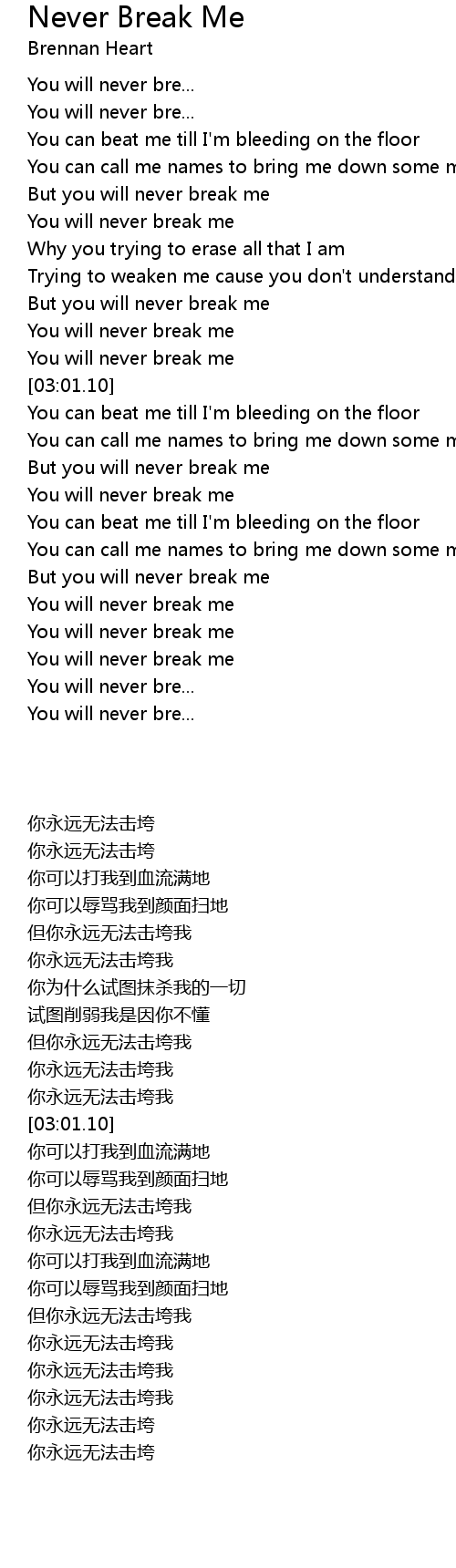 But you will never break me |