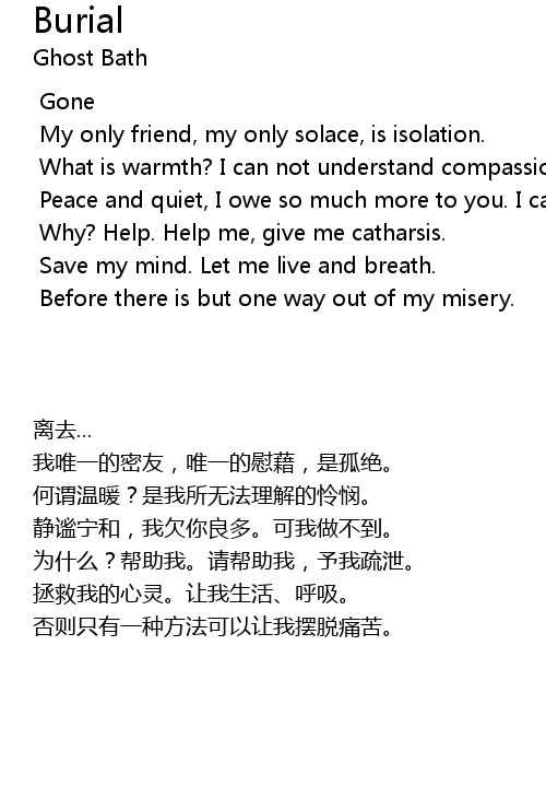 | [01:44.598] | My only friend, my only solace, is isolation. |