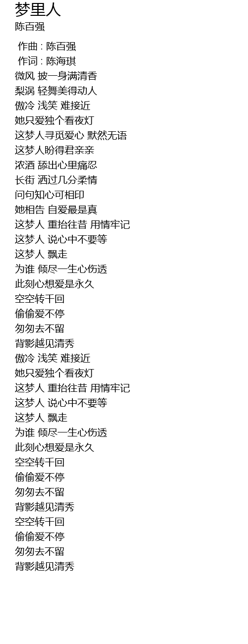 | [00:00.00] | 作曲 : 陈百强 |