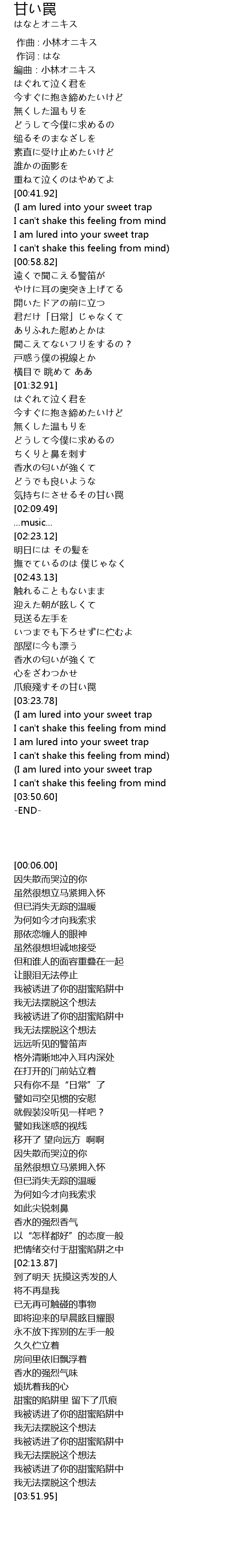 | [03:18.74] | 爪痕殘すその甘い罠 |