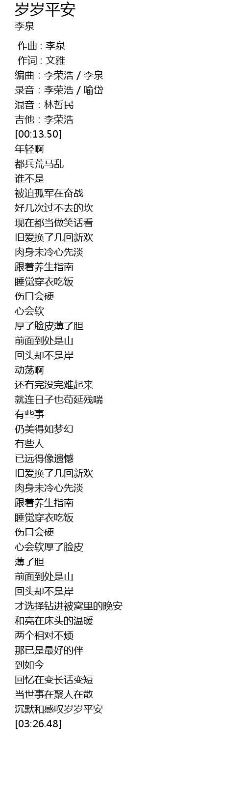 | [03:09.36] | 沉默和感叹岁岁平安 |