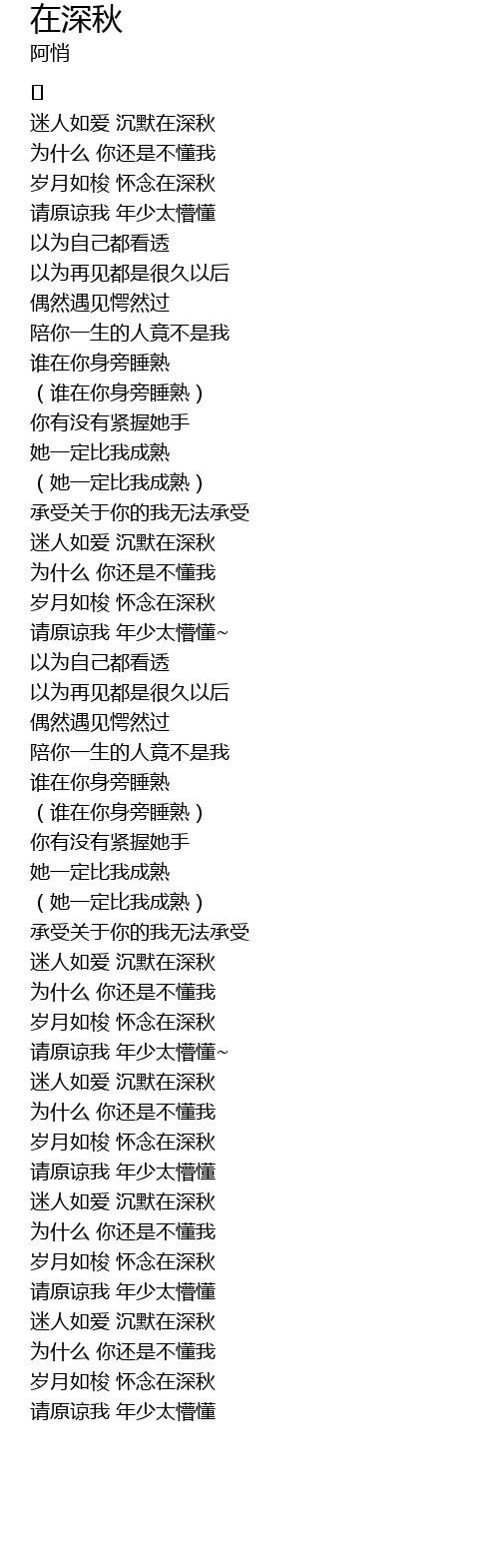 | [00:18.764] | 迷人如爱 沉默在深秋 |