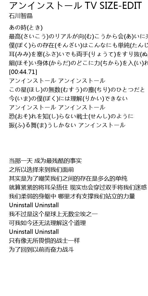 | [00:47.58] | アンインストール アンインストール |