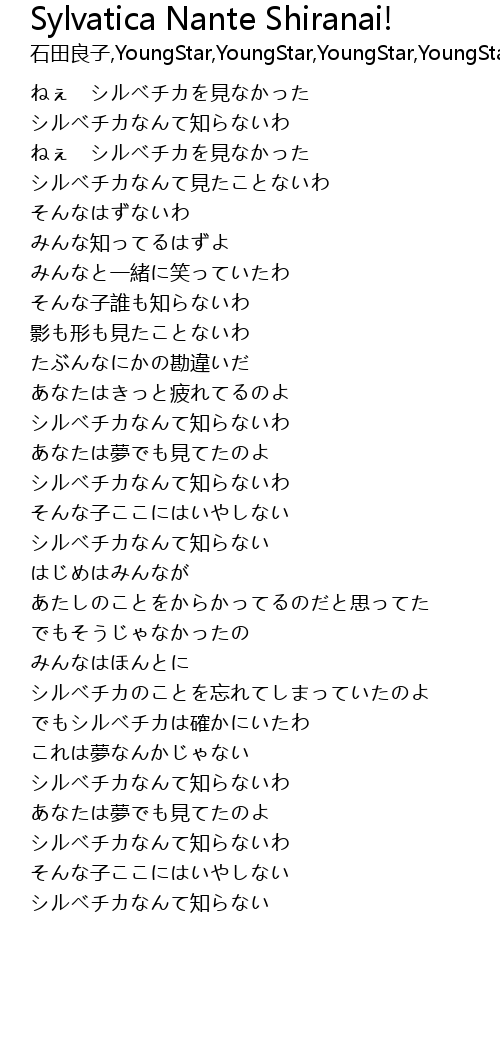 | [00:12.08] | ねぇ シルベチカを見なかった |